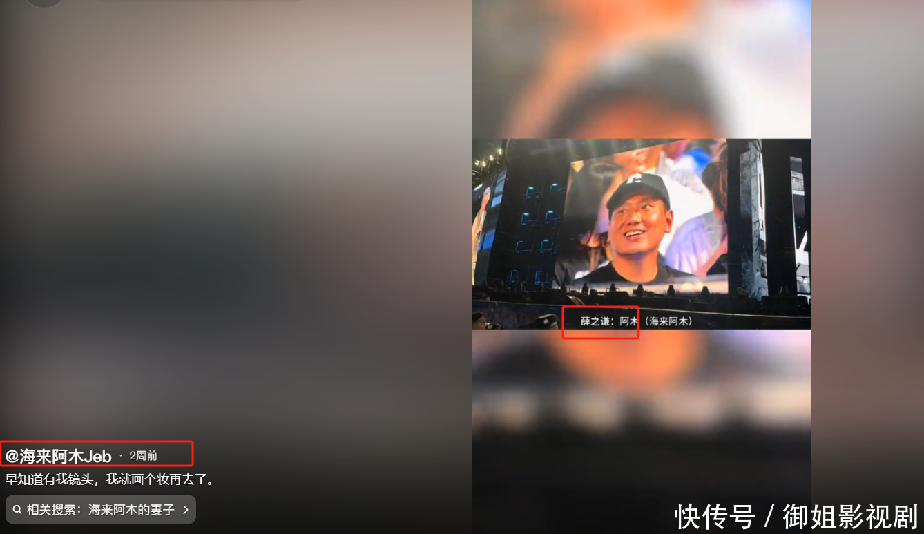 2024年4月15日,海来阿木去了薛之谦的重庆巡演,画面给到他时,薛之谦立马抛梗,捉弄海来阿木耳朵大有福分。